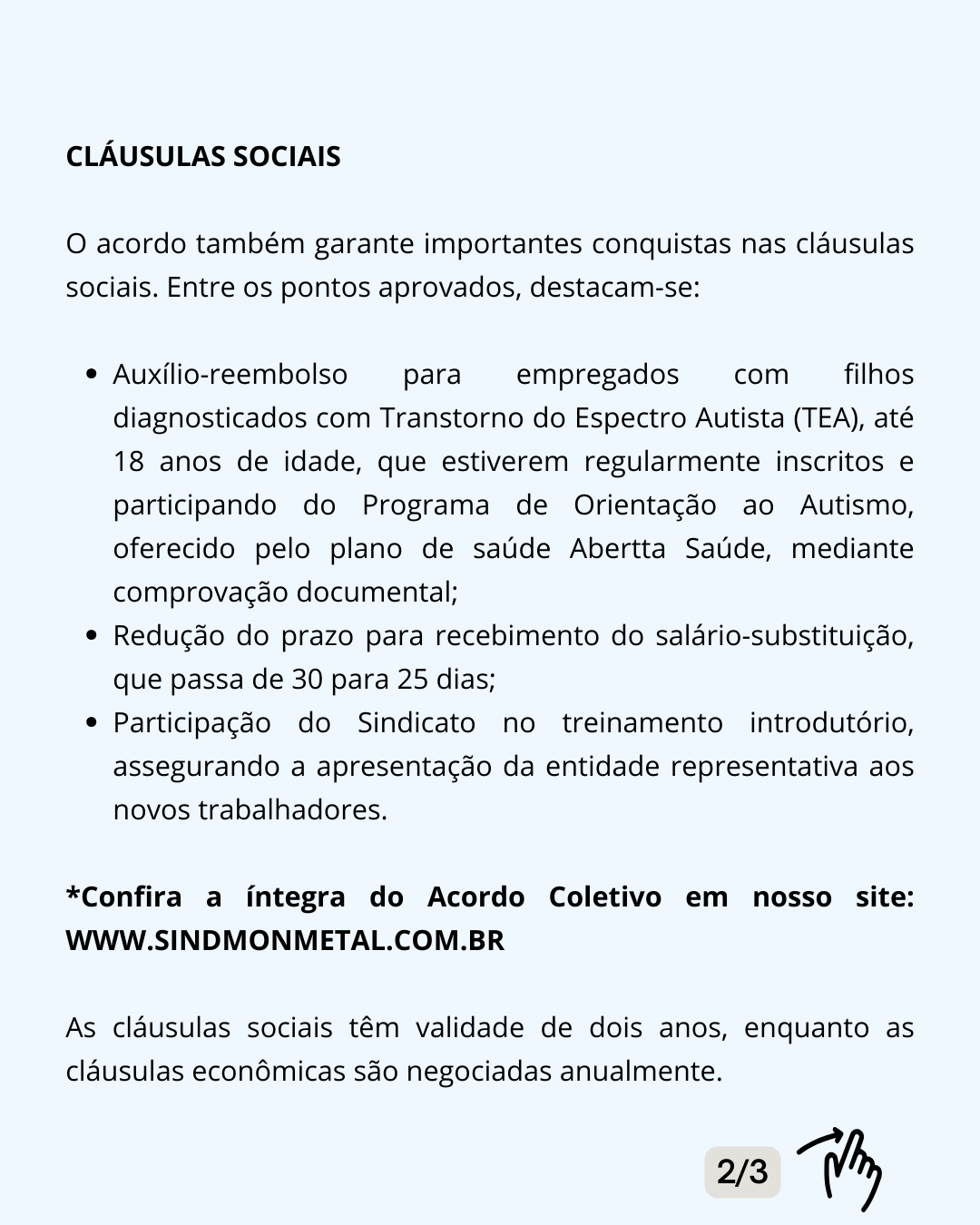 O acordo também garante importantes conquistas nas cláusulas sociais. Entre os pontos aprovados, destacam-se: