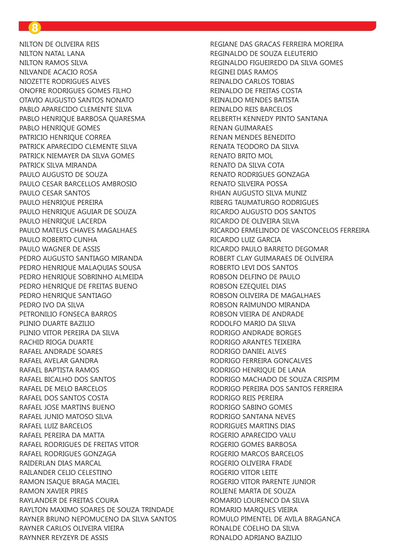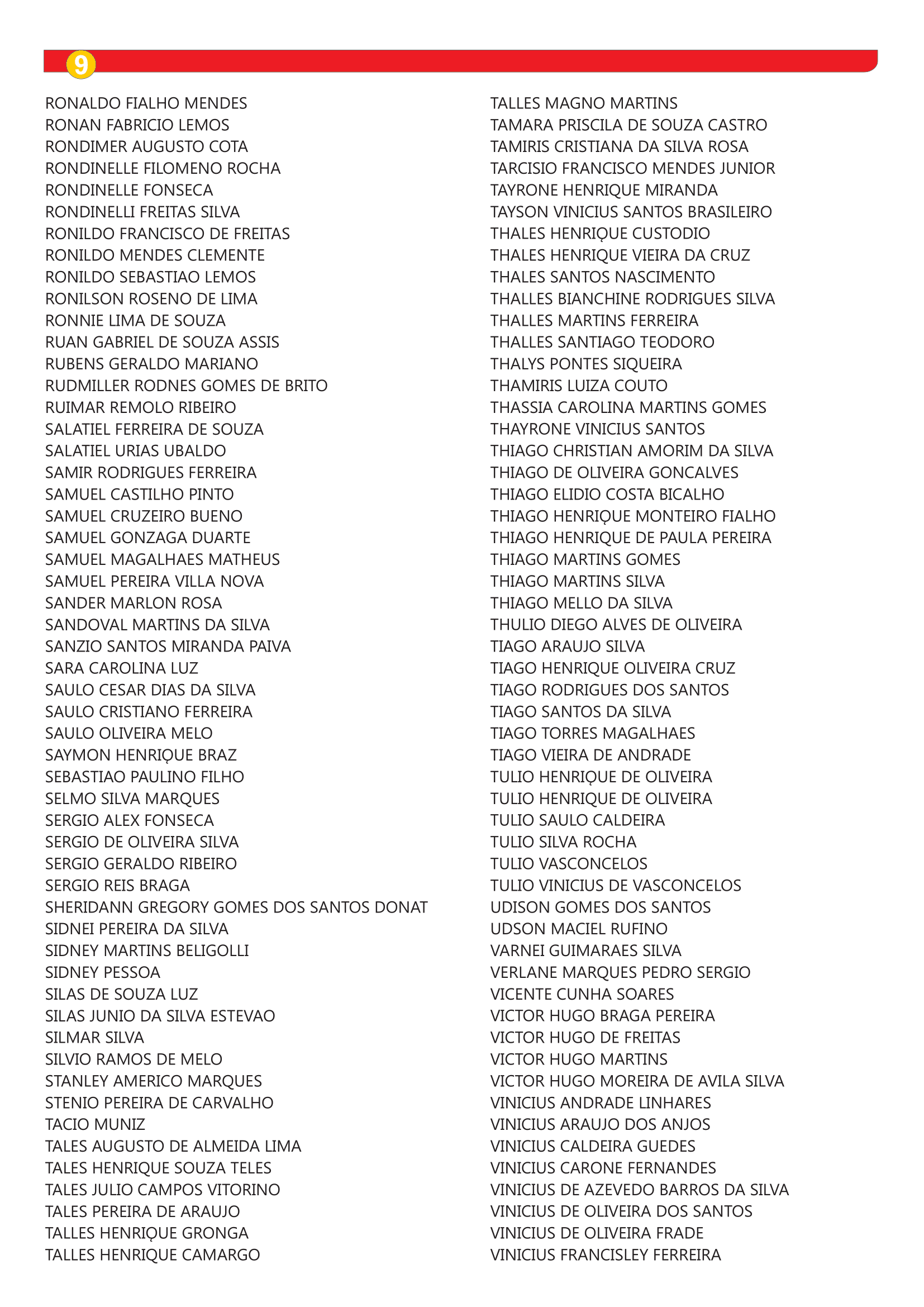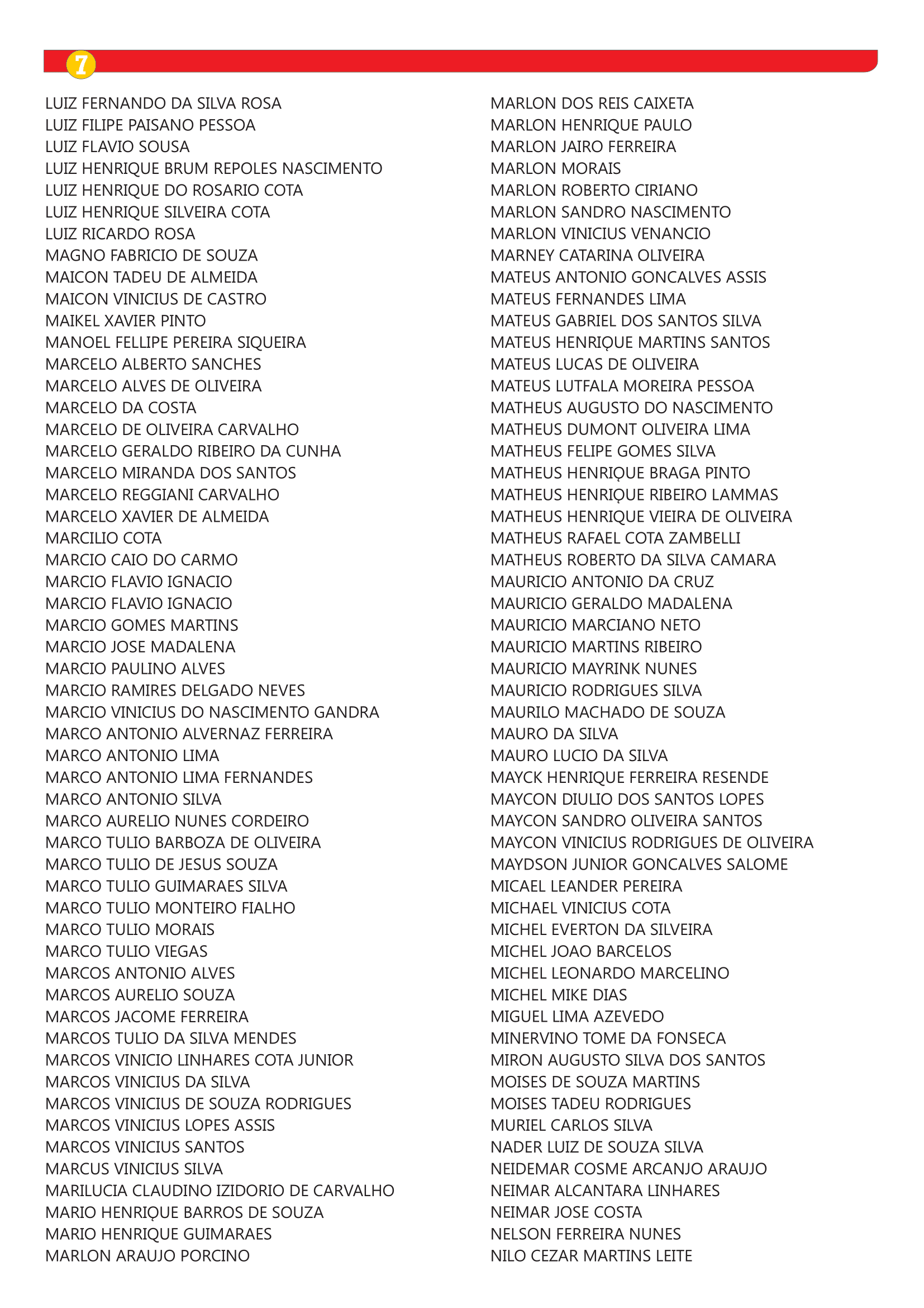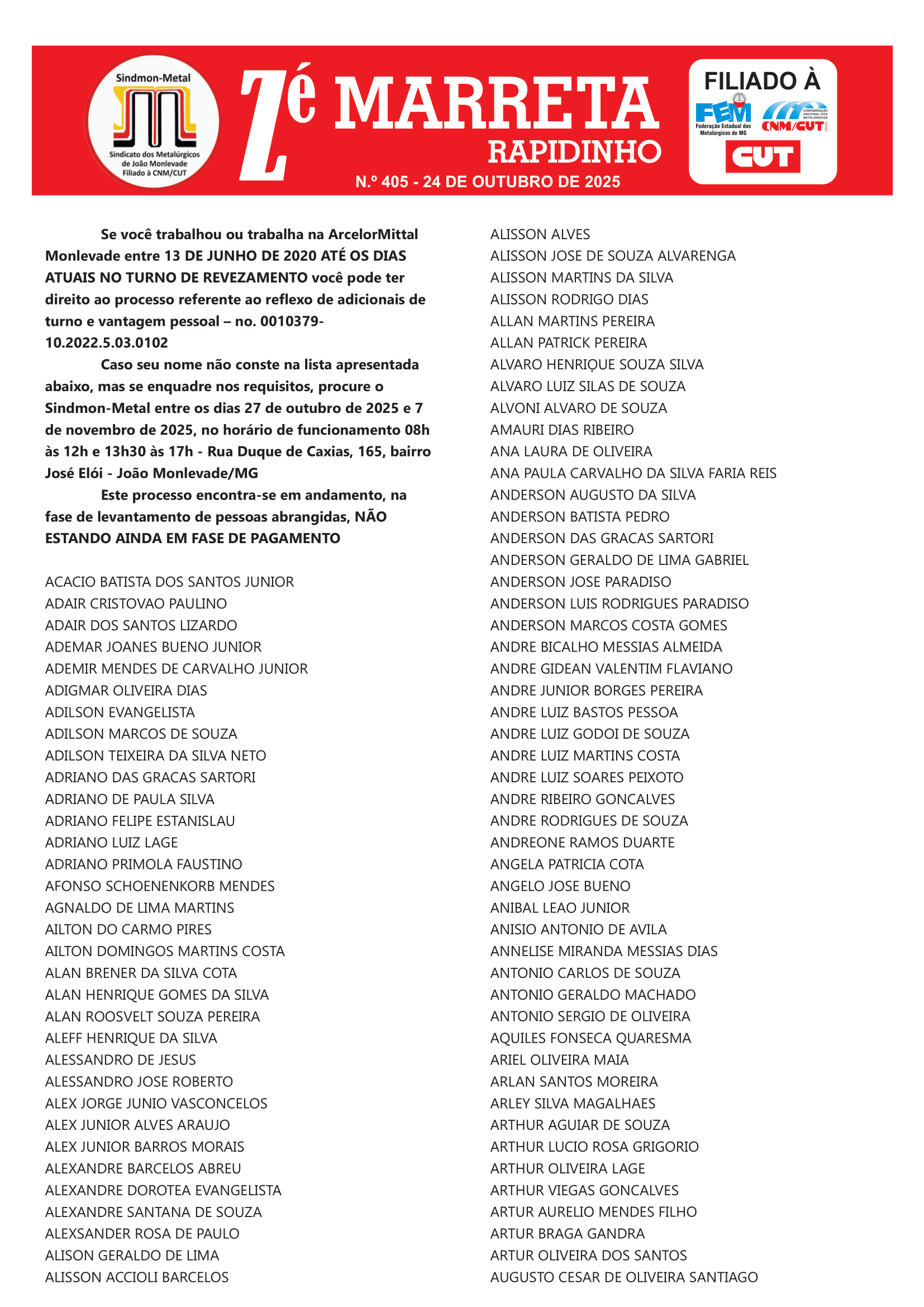 Caso seu nome não conste na lista apresentada abaixo, mas se enquadre nos requisitos, procure o Sindmon-Metal entre os dias 27 de outubro de 2025 e 7 de novembro de 2025, no horário de funcionamento 08h às 12h e 13h30 às 17h – Rua Duque de Caxias, 165, bairro José Elói – João Monlevade/MG.