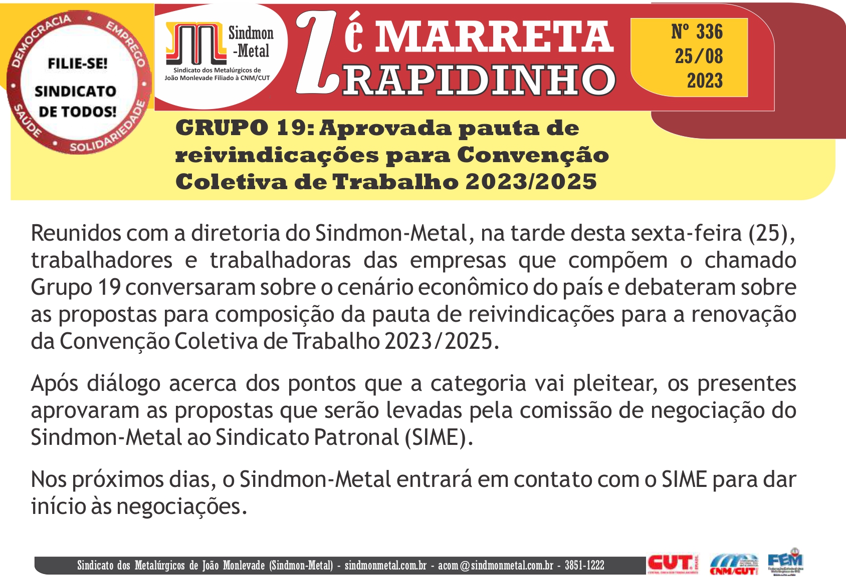 Acompanhe toda a negociação para a Convenção Coletiva de Trabalho 2023/2025 do Grupo 19