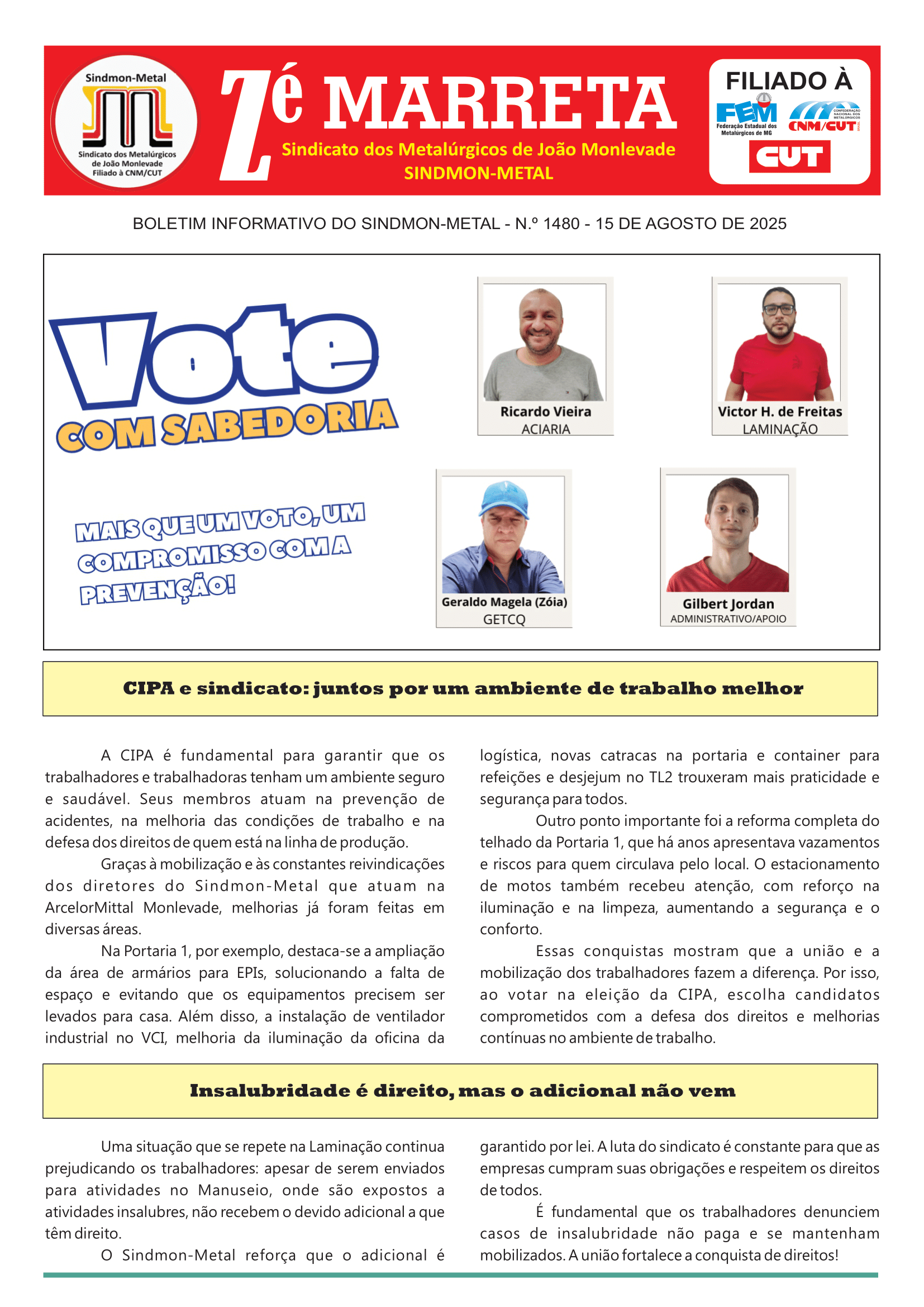 Essas conquistas mostram que a união e a mobilização dos trabalhadores fazem a diferença. Por isso, ao votar na eleição da CIPA, escolha candidatos comprometidos com a defesa dos direitos e melhorias contínuas no ambiente de trabalho.