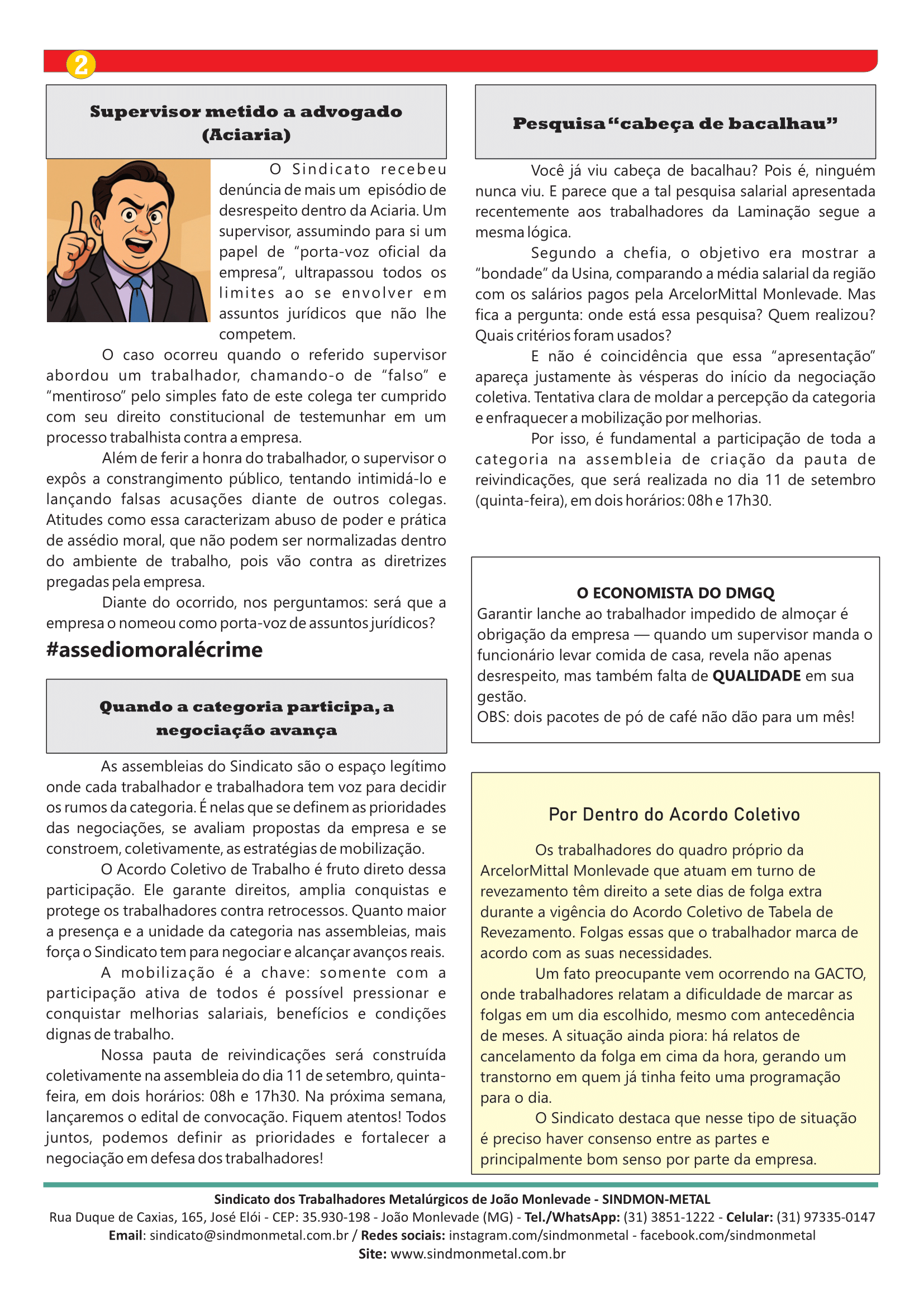 O Sindicato recebeu denúncia de mais um episódio de desrespeito dentro da Aciaria. Um supervisor, assumindo para si um papel de “porta-voz oficial da empresa”, ultrapassou todos os limites ao se envolver em assuntos jurídicos que não lhe competem.
