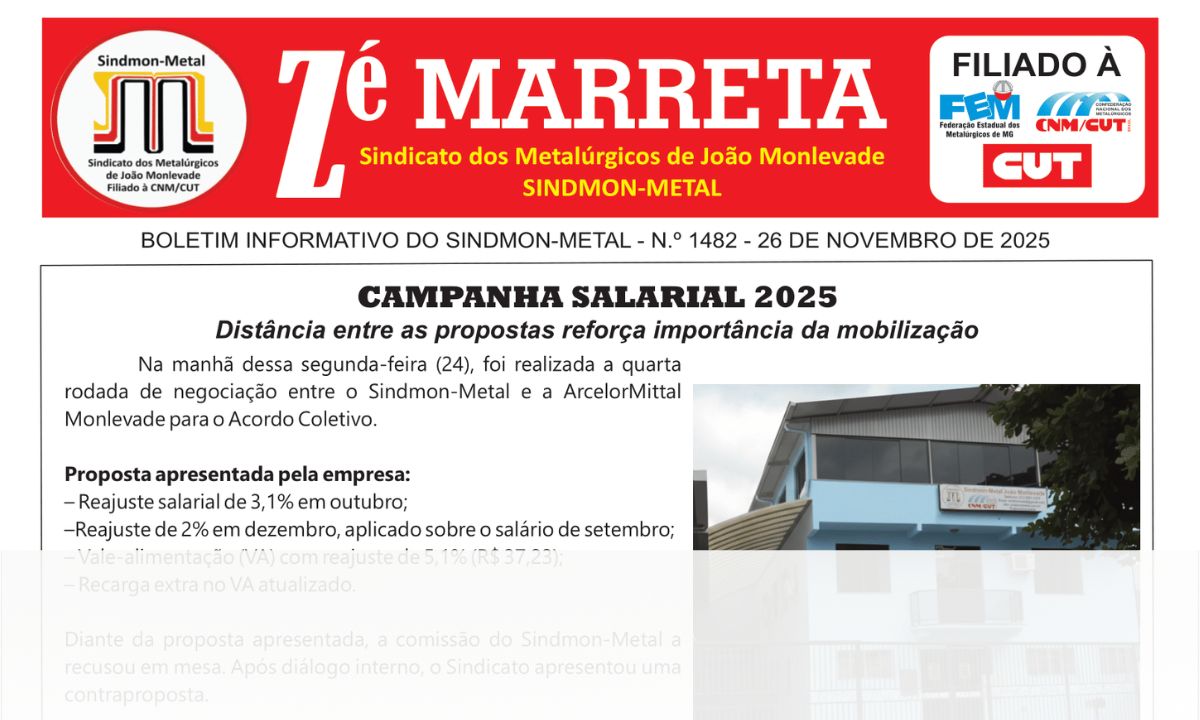 O Sindmon-Metal reforça a importância de trabalhadoras e trabalhadores permanecerem atentos às convocações do Sindicato. A participação nas assembleias será fundamental para fortalecer a voz da categoria e decidir coletivamente os próximos passos desta negociação.